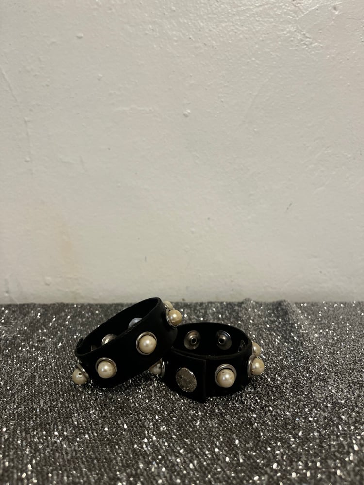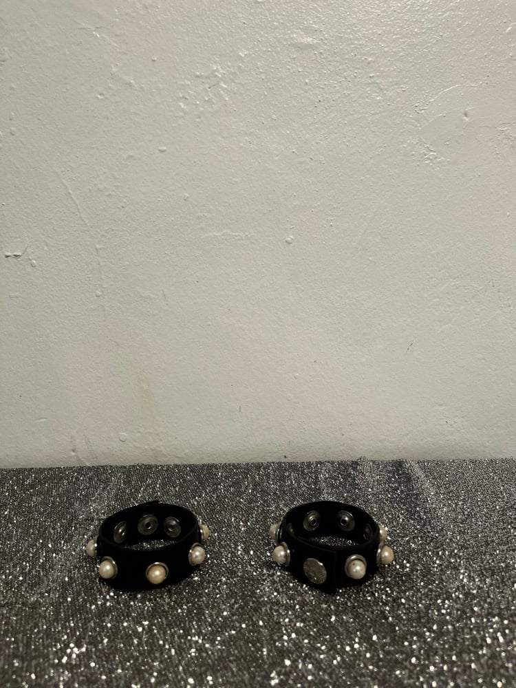 Faux pearl inlay leather bracelets with single clasp.