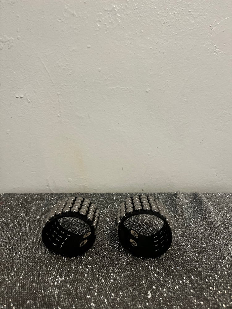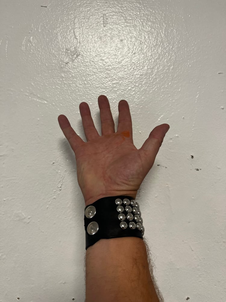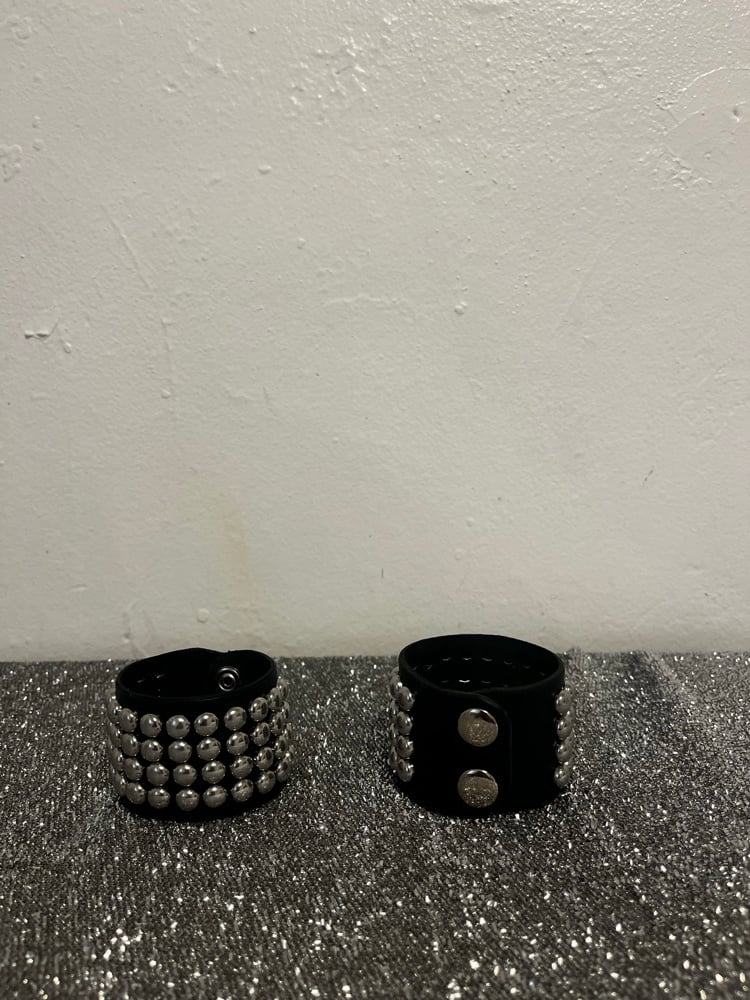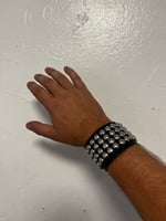Hand studded bracelets with double snaps.